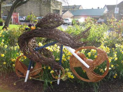 Three willow bicycles, with riders, have been installed at the Fire Station, just in time for the Tour de Yorkshire tomorrow. They are made by Dragon Willow, and are the result of a collaboration between Otley in Bloom, Otley Fire and Rescue, Otley Lions and Dragon Willow, celebrating Lizzie Armitstead, the reigning World, Commonwealth and National road race champion.