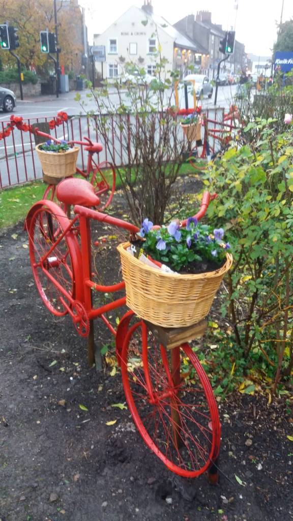 OiB first planted these wrecked bicycles in the Firestation flowerbed some years ago. Time and weather has done its damage, so we upgraded the structure and baskets to show off these flowers.