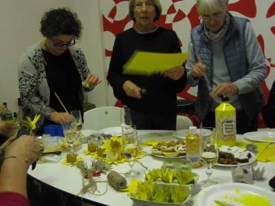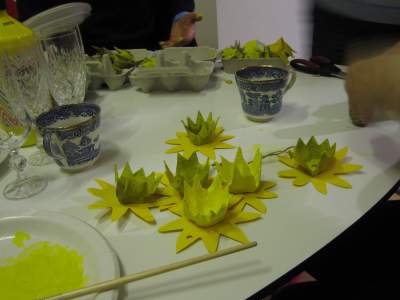 We spent a happy evening making decorations for our tree which will be in the Christmas Tree Festival soon. This is what we made, with some mulled wine to help us along.