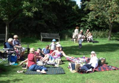 The annual Otley in Bloom picnic (a bring-and-share event) was held in Wharfemeadows Park on 19th July, to coincide with Otley Brass Band performing there. We sat by the nectar bed and admired the flowers and bees, and the children who came had fun trying to fly a kite and playing with an umbrella. It’s not all hard work at Otley in Bloom.