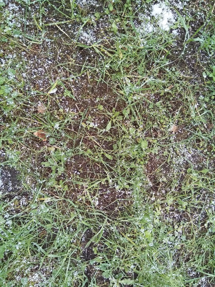 Focusing on the front rectangle of grass we mowed the grass again, and again, and again. This allowed us to get down to the turf of the garden. Then we used a turf cutter to slice strips out, which we flipped over. The addition of 0.5 kg of wildflower seed and about the same of dry sand scattered by hand over the newly exposed earth seemed to work well. Over the coming few days the British weather did the right sort of things and watered the seed in. Some of it will require colder weather to trigger germination.